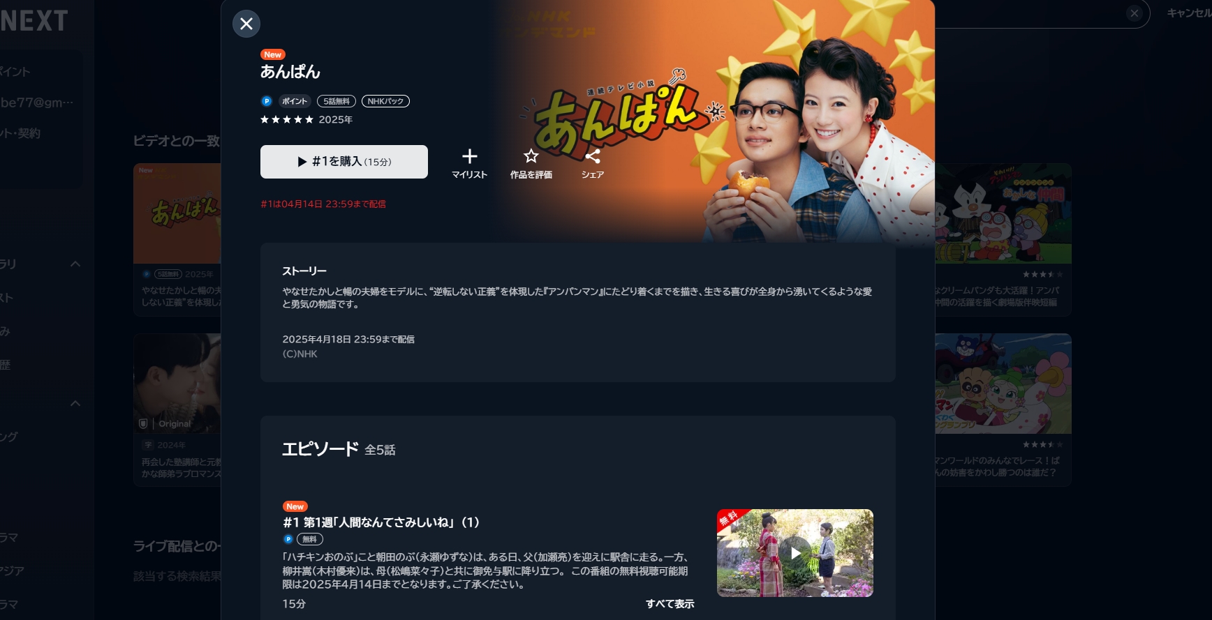 あんぱんだけでなく、過去の朝ドラ、朝ドラ主演&出演ドラマ/映画、NHK番組、最新ドラマ、アニメ、映画を見逃してしまった、もう一度みたい方、1話~最新話までイッキ見したい、原作も読みたい方、NHKオンデマンド・NHK番組・人気バラエティ・音楽系・MV・お笑い系・ライブ・アニメ・映画・ドラマなどを観たい方はU-NEXTで視聴できますよ!