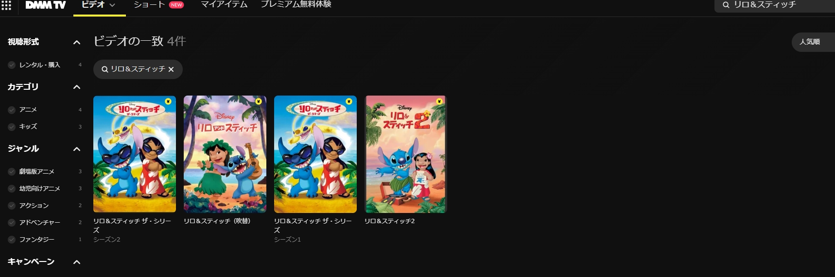 DMMTVならリロ&スティッチだけでなく、人気のテレビ番組、ドラマ、バラエティ、映画、アニメ、エンタメ、2.5次元舞台、特撮、アイドル、グラビア、アダルト作品などを観れます!(アダルト作品は18歳未満は閲覧できません)