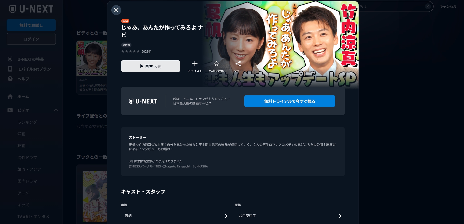 じゃあ、あんたが作ってみろよだけでなく、人気テレビ番組・ドラマ・バラエティ・映画・アニメを無料フル視聴したい方や見逃した回がある方はこちら!