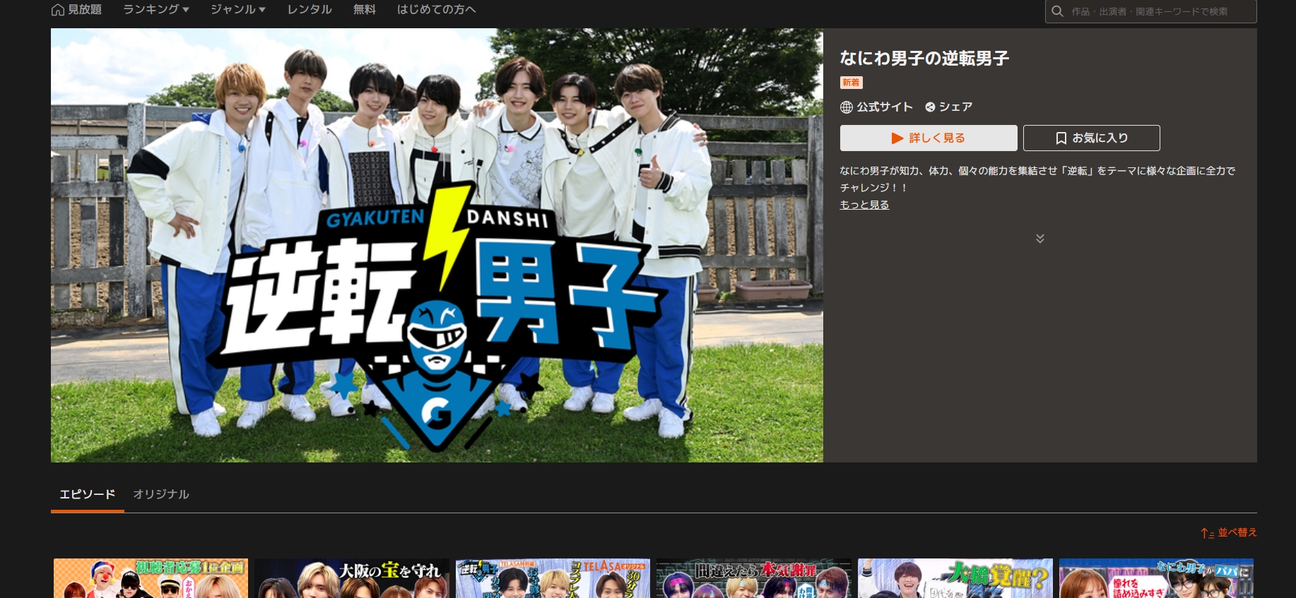 なにわ男子の逆転男子だけでなく、人気テレビ番組・フィギュア・スポーツ・音楽番組・歌番組・スポーツ・バラエティ・お笑い番組・映画・ドラマ・アニメの1話~最新話のフル視聴(見逃し配信)や原作はこちら!