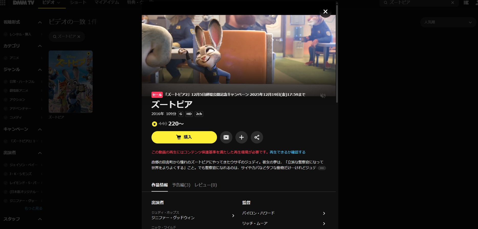 DMMTVならズートピアだけでなく、人気のテレビ番組、バラエティ、ドラマ、映画、アニメ、エンタメ、2.5次元舞台、特撮、アイドル、グラビア、アダルト作品などを観れます!(アダルト作品は18歳未満は閲覧できません)